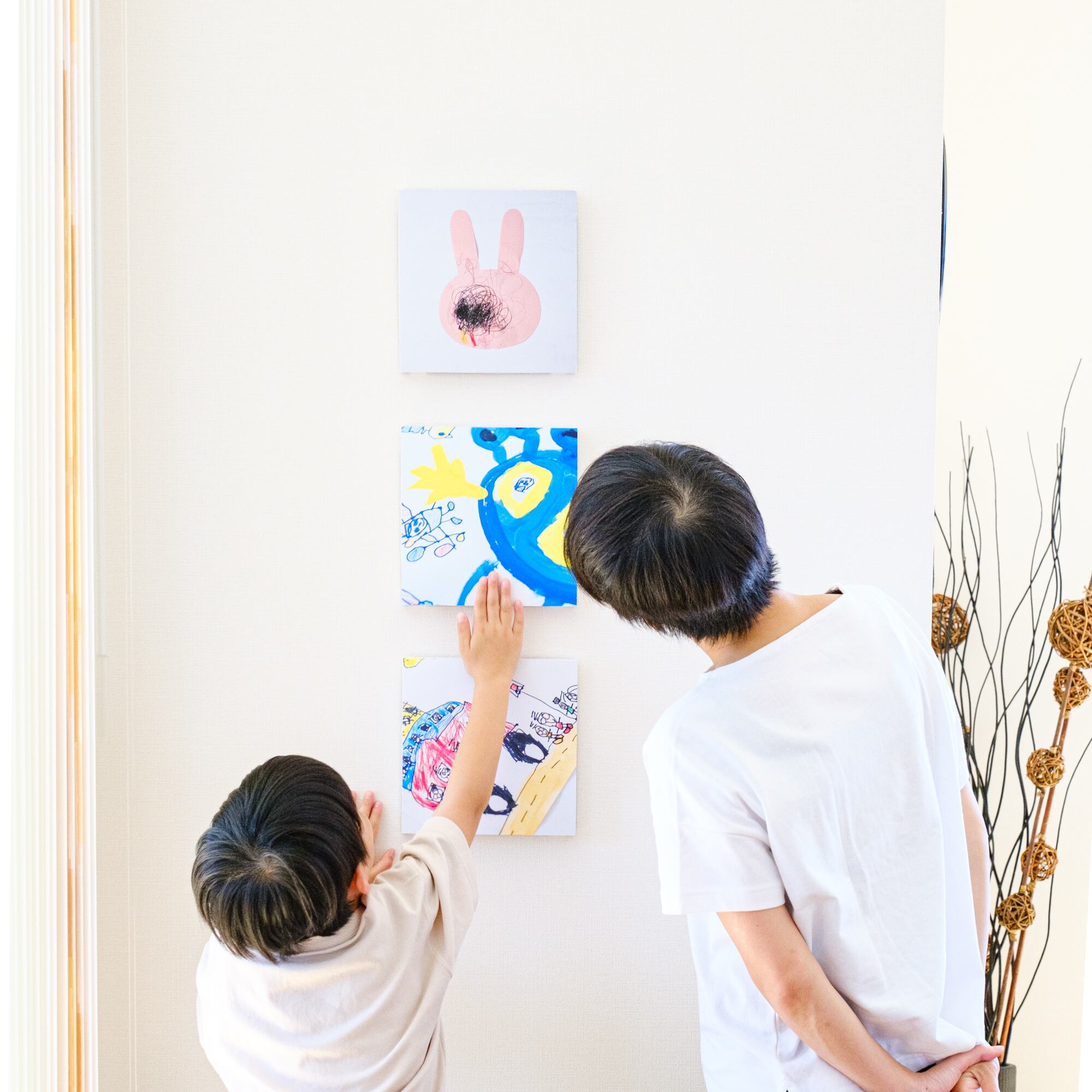 それぞれ作品は真正面 (真俯瞰) で1カットずつ撮影していきます。真正面 ( 真俯瞰 ) 撮影でお子さまの描いた全体像をきちんと表現いたします。また納品画像はスクエアサイズ(1:1)なので、そのままinstgramに綺麗に公開できます。